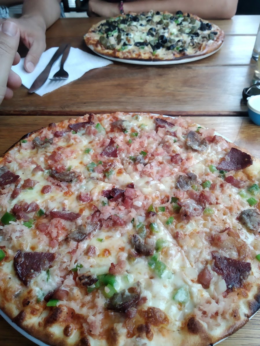 Thin wood fired base. Awesome taste. Enough topping. Got the Pappas special. Good fast friendly service. I like. Wont buy pizza anywhere else in Nelspruit.